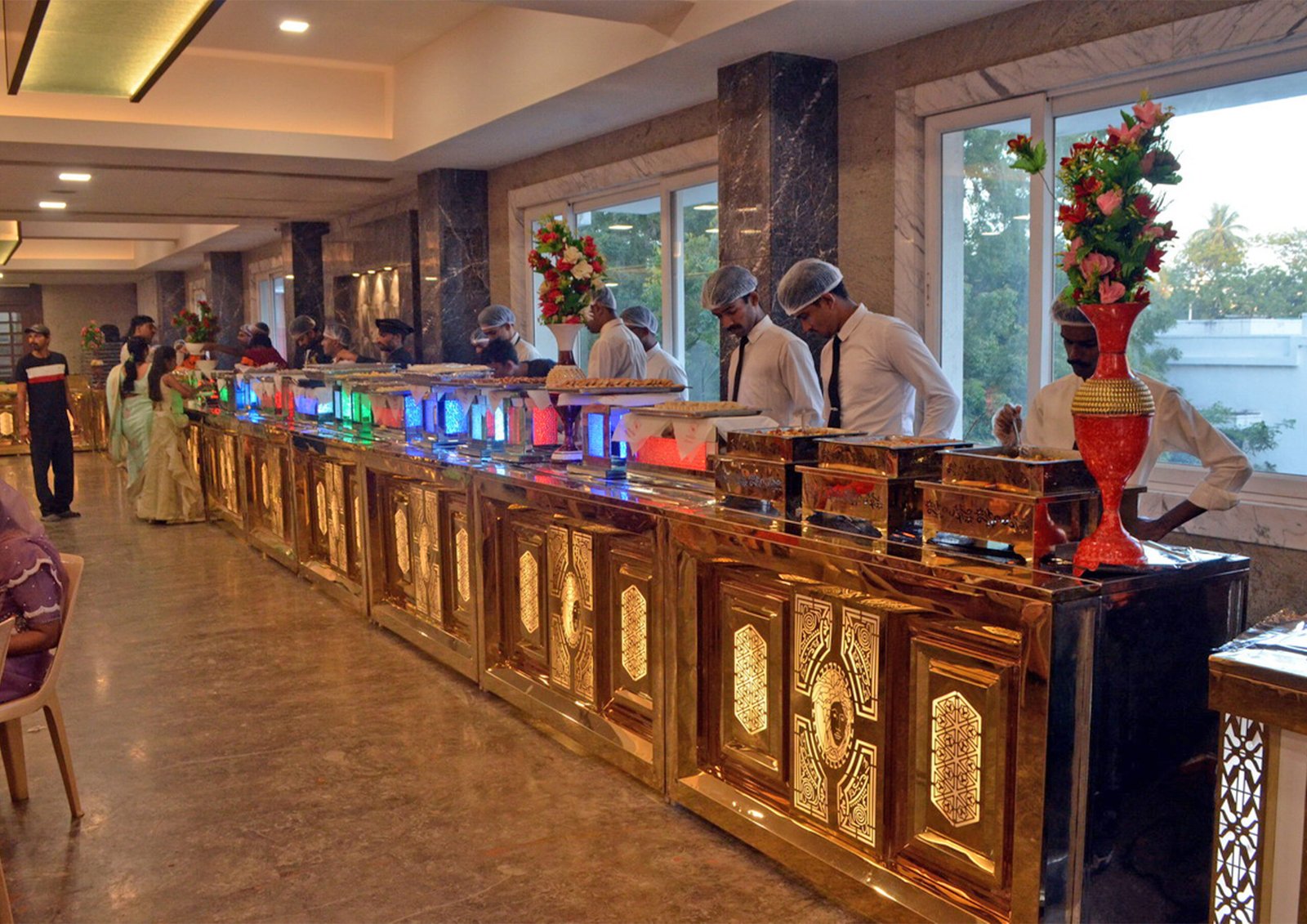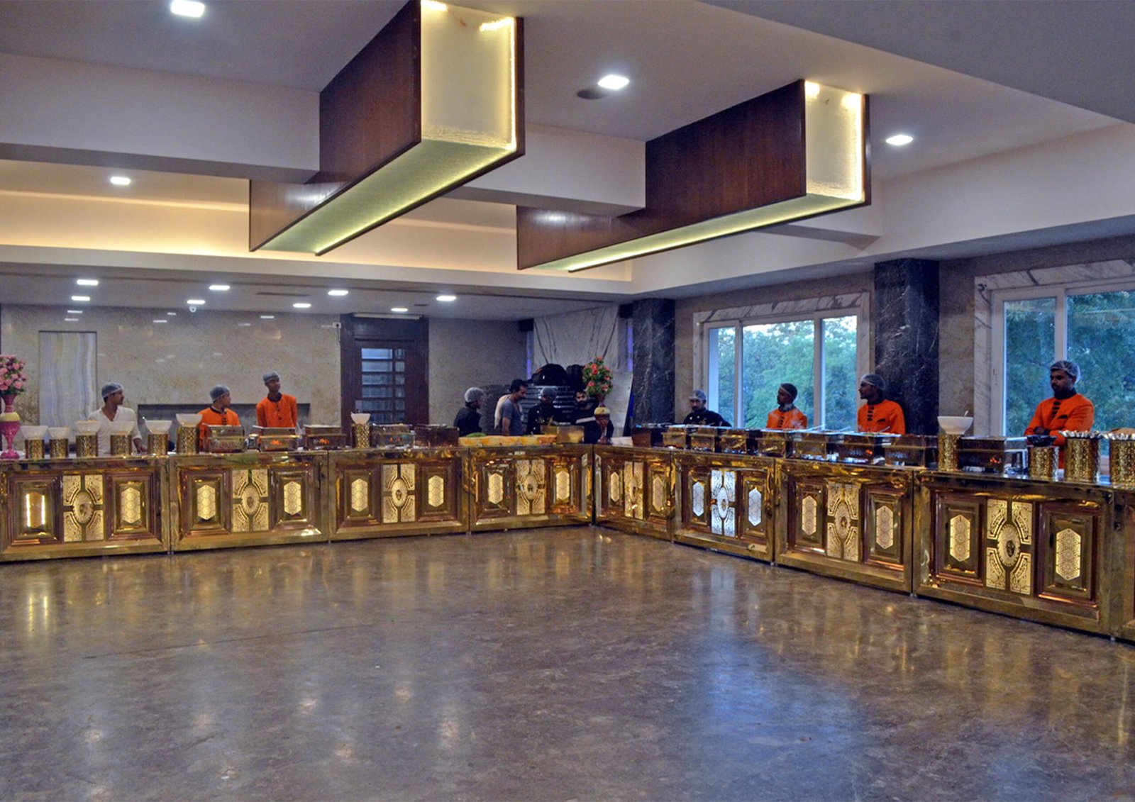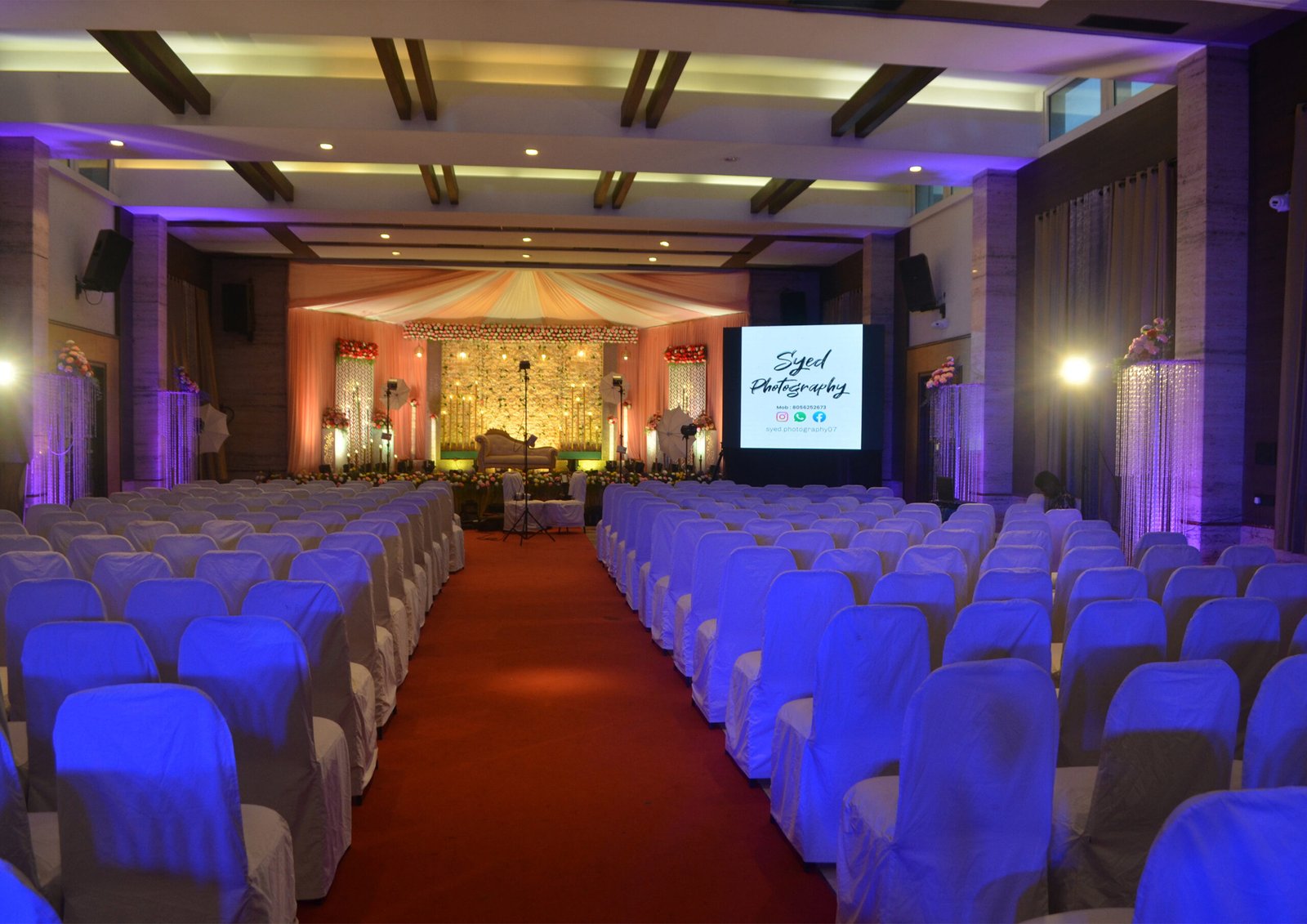 accommodates 500 seating capacity and 150 seats in the dining hall. total 17 ultra-modern rooms. all are air-conditioned. 24 hrs uninterrupted power/water with clean